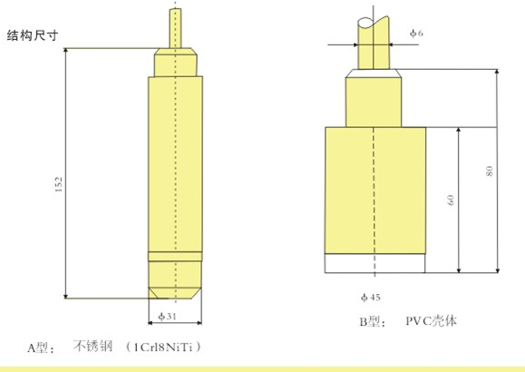 PT311型投入式液位變送器(也稱靜壓式液位變送器)選用進(jìn)口帶防腐膜片敏感組件,將芯片裝入一個(gè)不銹鋼(或PVC)殼體內(nèi),頂部的鋼帽起保護(hù)傳感器膜片的作用,同時(shí)使液體流暢地接觸到膜片。該產(chǎn)品用特制的防水中空電纜使感壓膜片的背壓腔與大氣良好相通,測(cè)量液位不受外界大氣壓變化的影響,測(cè)量準(zhǔn)確,長(zhǎng)期穩(wěn)定性好,并具有優(yōu)良的密封及防腐性能,可直接投入水、油等液體中長(zhǎng)期使用。PVC材料的外殼及電纜可測(cè)量多種防腐蝕性液體。